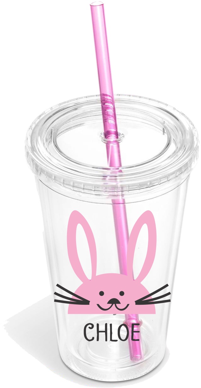 Clear double walled tumbler with pink or blue straw.